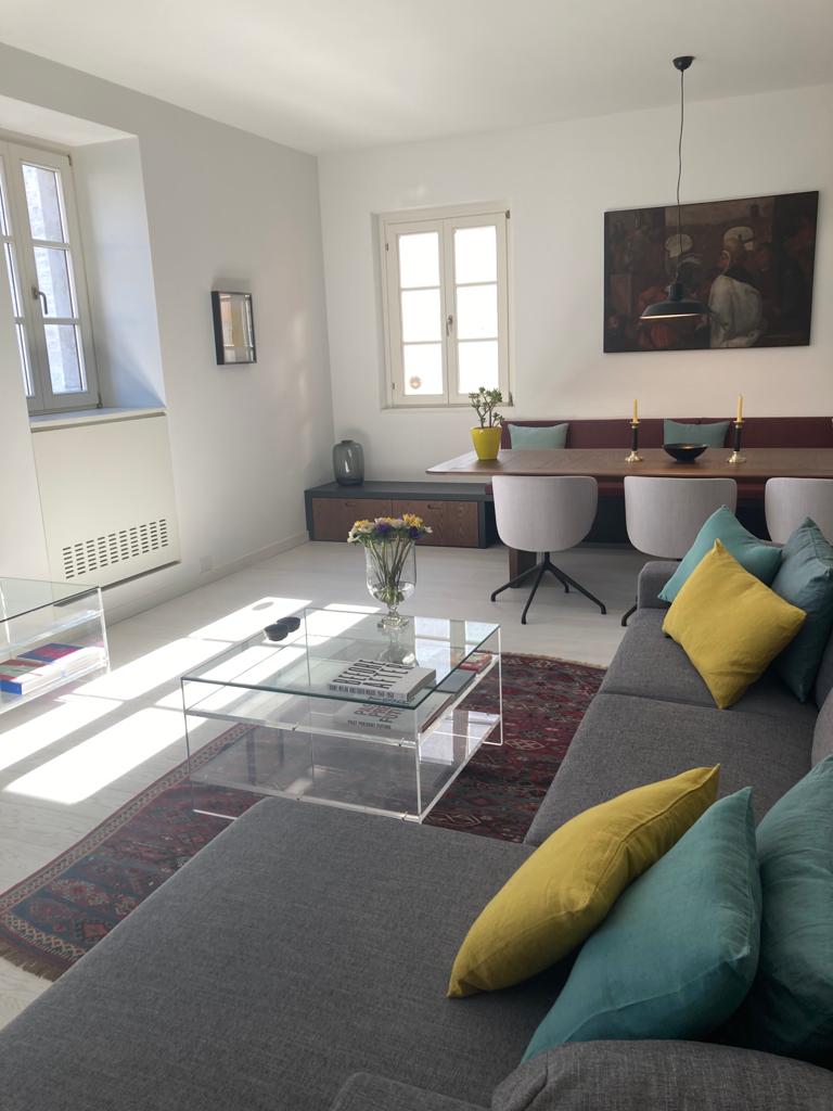 Situato all’interno di un palazzo del 1200, l’appartamento, arredato con gusto e con oggetti di design offre privacy e tranquillità.