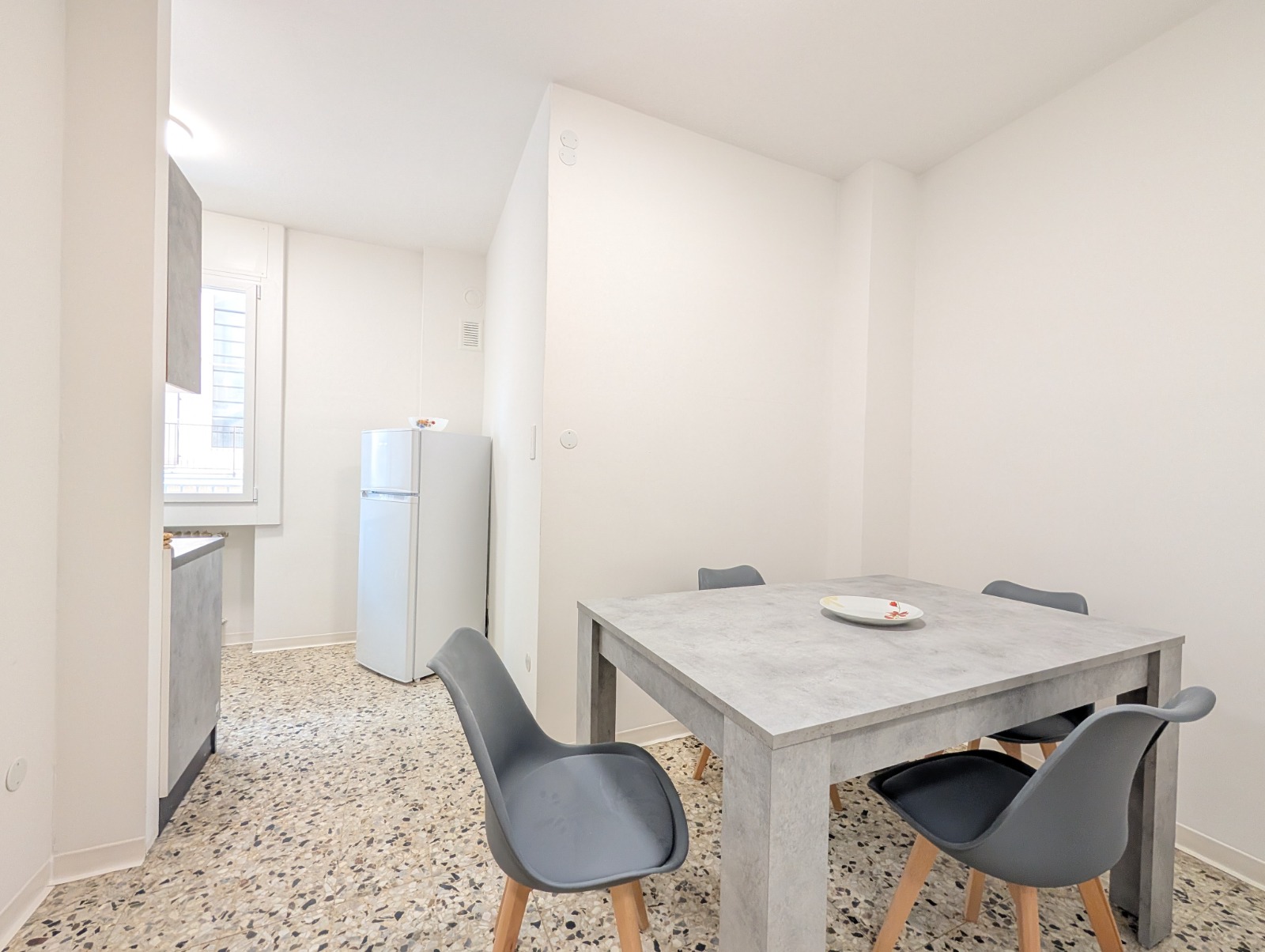 L’appartamento è arredato con l’essenziale e attrezzato con i principali elettrodomestici: piano a induzione, forno, frigorifero, freezer, lavatrice.