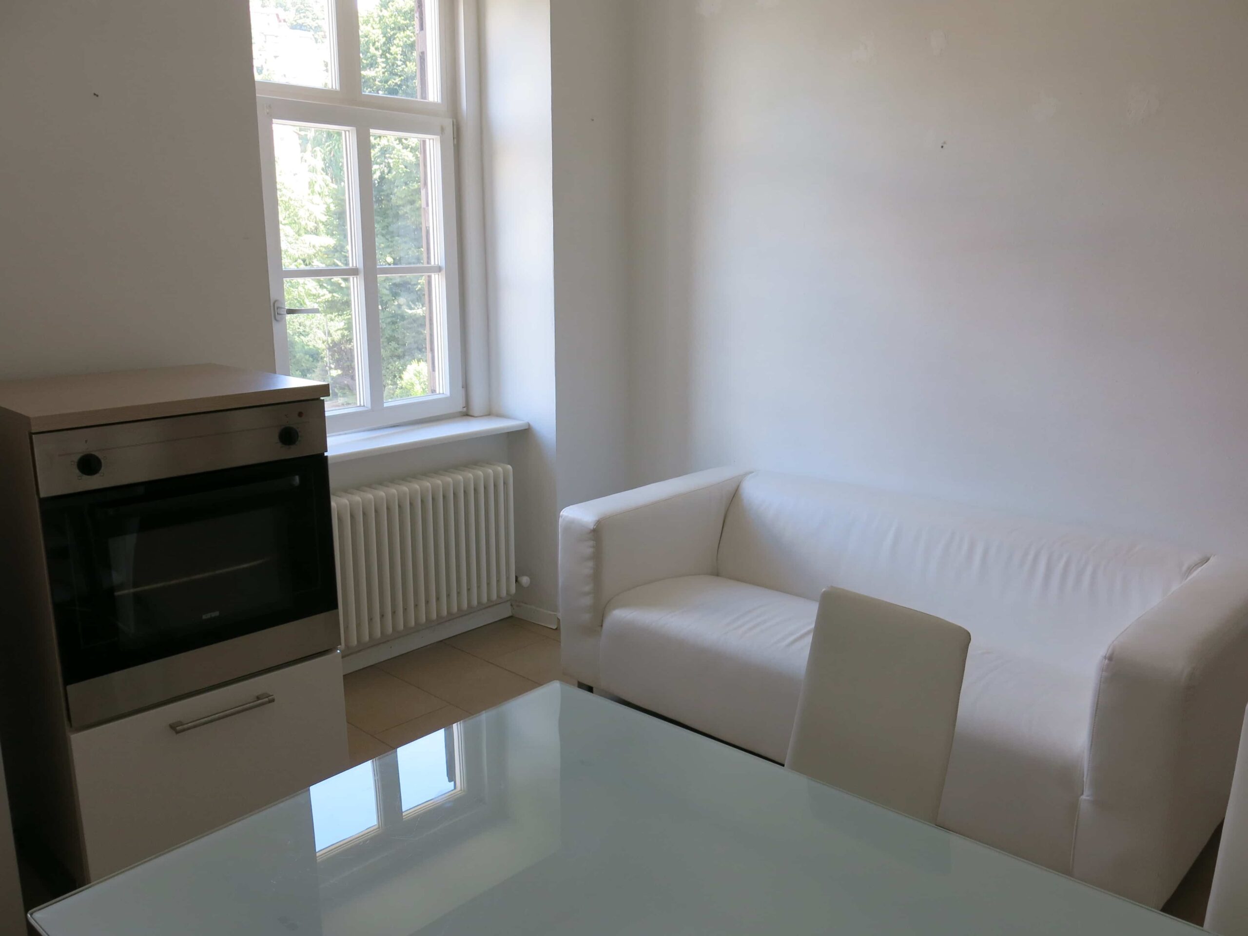 L’appartamento è composto da una camera doppia, un bagno con lavatrice, un salotto-cucina, cantina, posto bici.